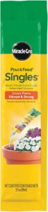 Feed your plants with a single pour. With Miracle-Gro Pour & Feed Singles there’s no need to guess how much to feed your favorite potted plants. Each single is designed to feed your plants every 10-14 days. Free Miracle Gro Pour and Grow single feeds to the first 325 people daily!